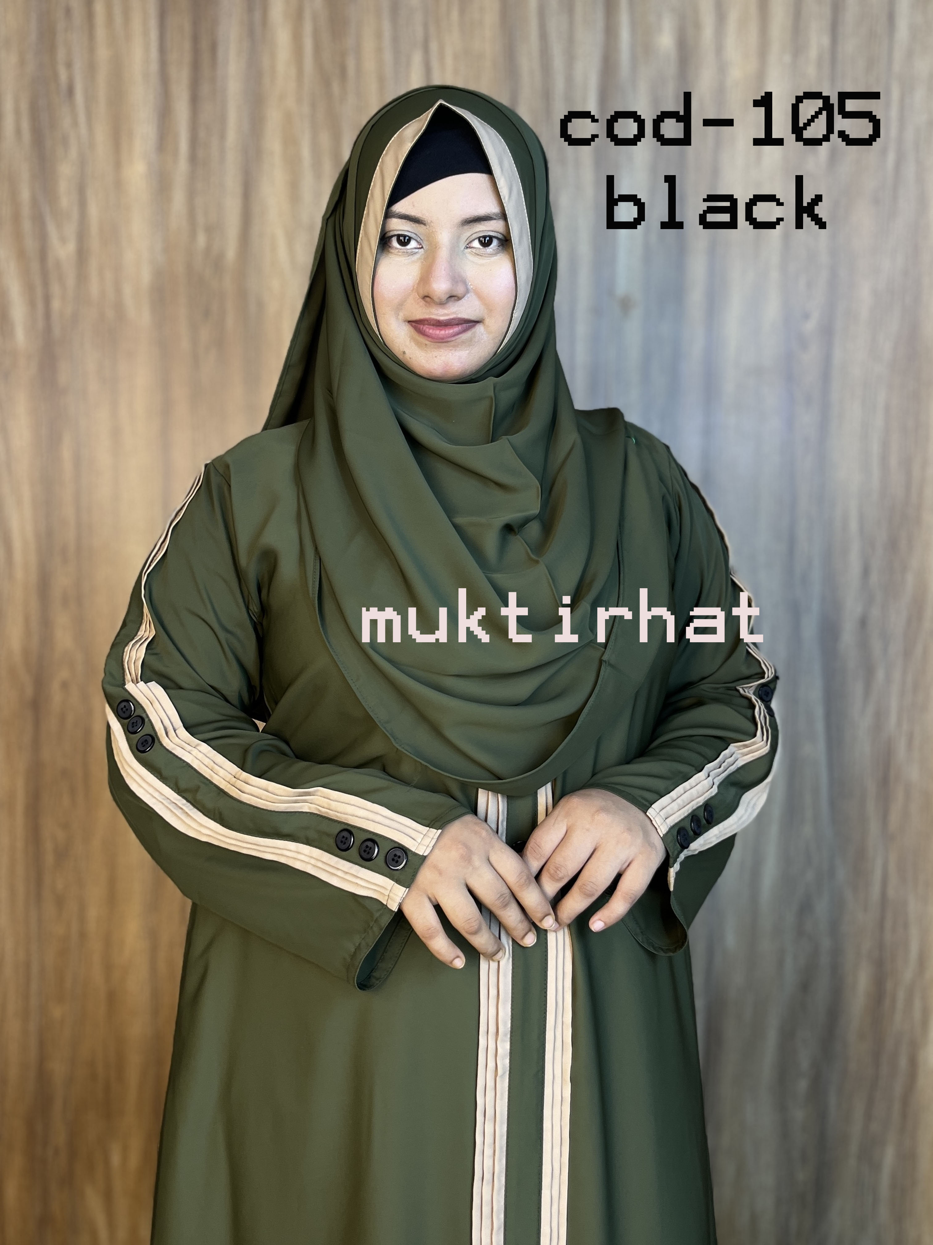 👉 রেগুলার ইউজের জন্য সুন্দর একটি বোরকা মডেল-১০৫। ✅প্রোডাক্ট কোয়ালিটি ১০০%। ✅ইমপোর্টেড দুবাই চেরি ফেব্রিক্স। ✅বোরকা এবং হিজাব (সাইজ-৩০/৭২) কম্ব প্যাকেজ। ✅সম্পূর্ণ ডিজাইন চেরী কাপড় এবং বাটন দিয়ে করা। অনায়াসে রাফ ইউজ করতে পারবেন ♻️ বডি সাইজ ৪৬ ♻️গের-১০০